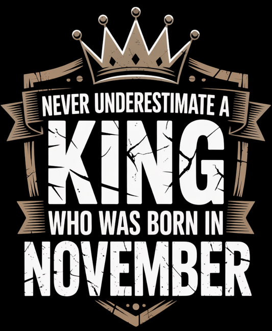 November Birthday T-shirt Round Neck Half Sleeve (Never Underestimate a King who was born in November)